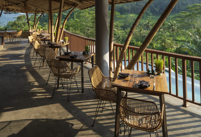 To enhance the exciting dining experience at Sleeping Gajah, you are pleased to take a seat nicely and witness the phenomenal panoramic view overlooking the hill right in front of you and the natural sound of Unda river while our chefs preparing the food for you.